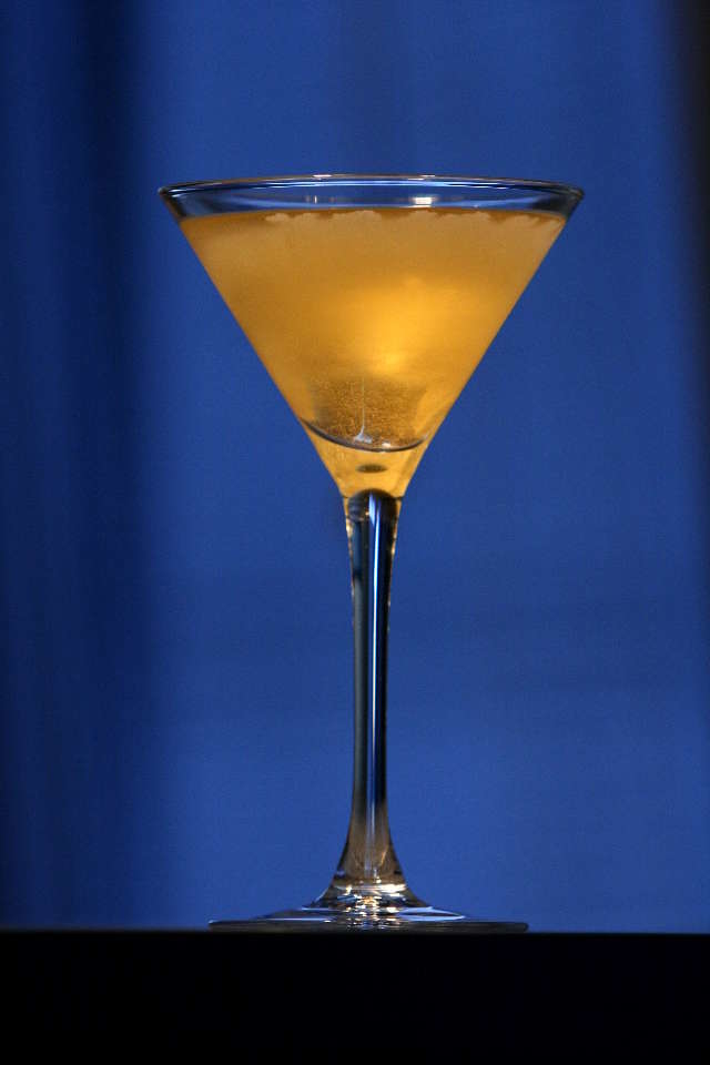 Приготовление: в шейкере смешать ликер, вермут и белый ром со льдом. Налейте холодный коктейль в стакан. Украсить листиком мяты и долькой лимона.