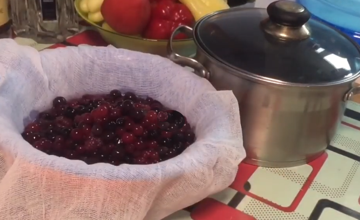 - На следующий день процеживаем настой через марлю, отжимая руками сок из ягод.