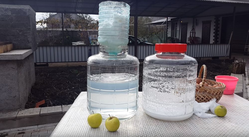 Чтобы не наклонять ёмкость и не выливать лишний белок на фильтр, лучше использовать принцип сообщающихся сосудов. Для этого нам подойдёт любая трубочка (например, силиконовая). Ставим ёмкость со смесью чуть выше пустого сосуда, вставляем трубочку, втягиваем через неё немного самогона и направляем в пустую ёмкость.