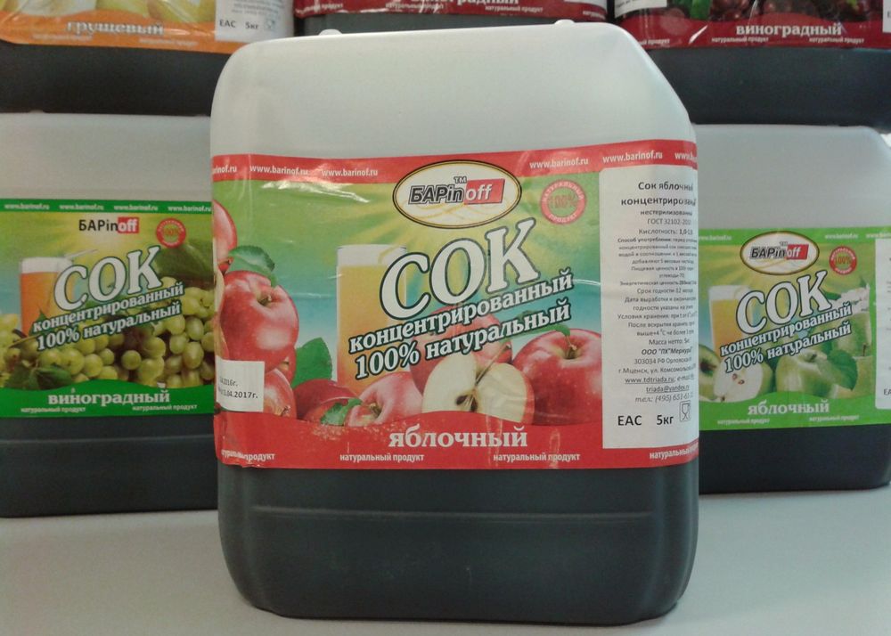 Концентрированный сок — это промежуточная стадия между соком прямого отжима и восстановленным соком (99% всего сока в магазине). Концентрат представляет из себя густую и вязкую жидкость, которая обычно продается в канистрах по 5 кг. Ориентировочная стоимость составляет 300 рублей за кг. Потреблять в пищу это сырье не рекомендуется, а вот ставить на нём брагу — пожалуйста!