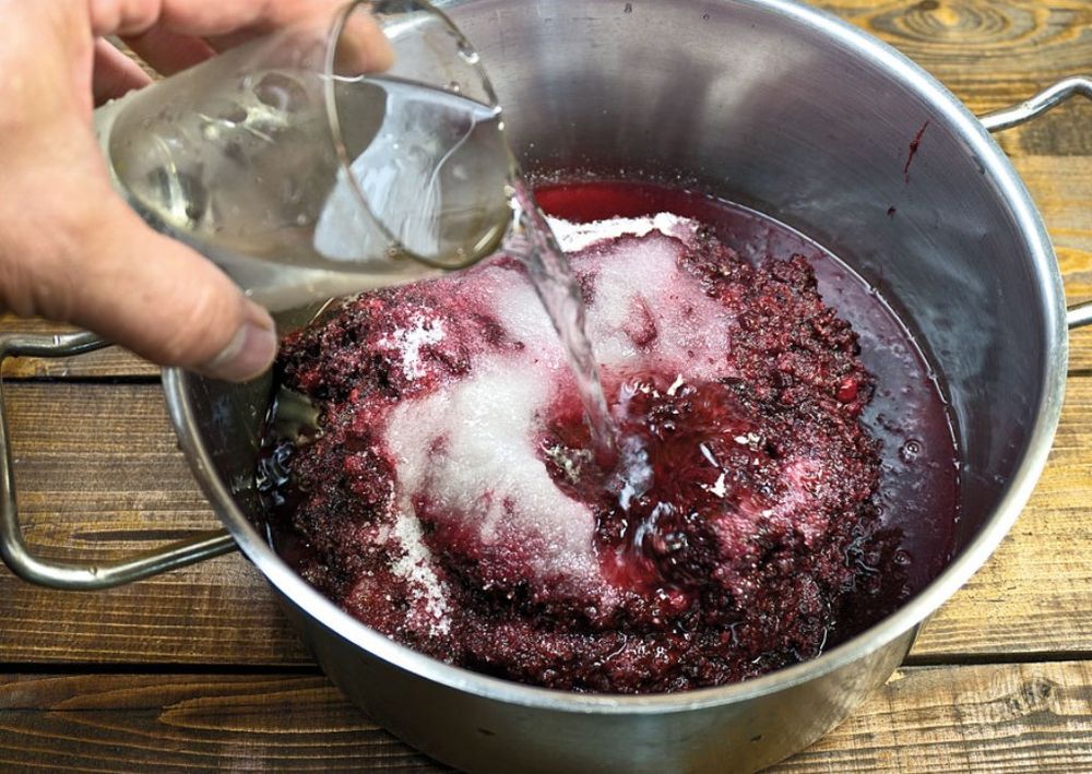 Получившуюся жидкость можно сначала поставить на вино, но если у вас объёмы маленькие или смысла в этом вы не видите, тогда просто используйте виноградный сок вместе с водой.