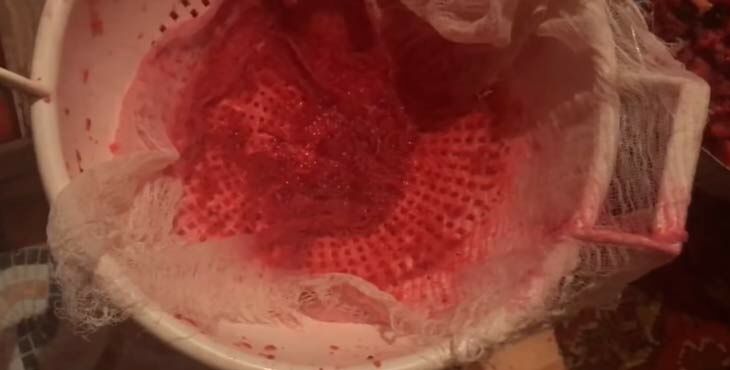 По истечении установленного времени необходимо будет все залить. Используем для этого дуршлаг и марлю. Точно так же выдавливаем мездру. В результате получаем сок. Который необходимо разлить по банкам для последующего брожения.