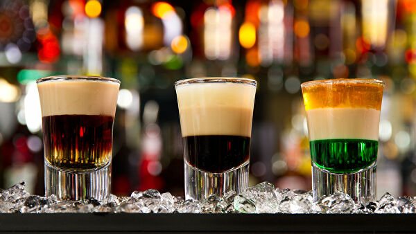 Состав: кофейный ликер Kahlua 20 мл, крем-ликер Baileys 20 мл, апельсиновый ликер Cointreau 20 мл.
