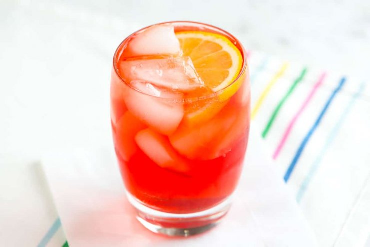 Газировка Cosmopolitan идеально подходит для непьющих, она содержит гранатовый сироп, а также персиковый и клюквенный соки. Впоследствии добавляется газированный напиток «Seven Up» или «Sprite».