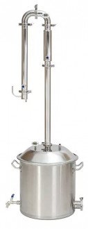 Данный аппарат предназначается для домашнего применения. Объем перегонного куба составляет 20 литров. Проточный охладитель расположен вертикально. В комплекте идет сухопарник, который очистит этиловые пары от сивушных примесей и биметаллический термометр, позволяющий контролировать температурный режим. Особенностью дистилляторов этой серии является съемная крышка, позволяющая легко мыть перегонный куб изнутри.