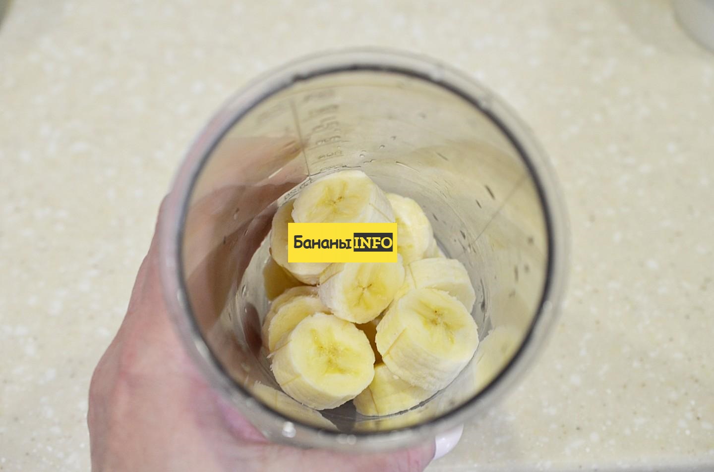 - Бананы нарезать небольшими ломтиками. Поместите в блендер или стеклянную посуду для взбивания.