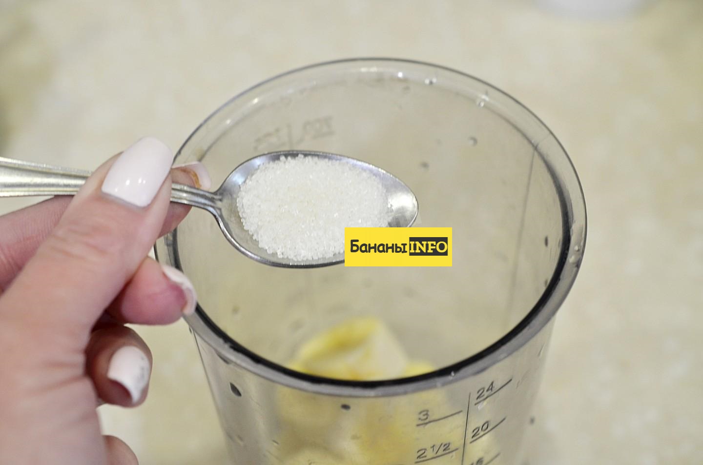 - Затем добавляется ванильный сахар. Конечно, можно и без этого, но детям нравится аромат ванили. Можно, как вариант, использовать корицу — ее дети тоже любят. Лучше всего не добавлять сахар, хотя здесь стоит ориентироваться на сладость банана.