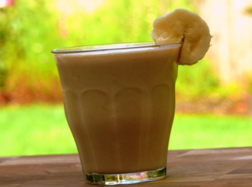 - Готовый напиток будет густым. При желании можно использовать не 1, а 1,5 плода, так вкус будет более «банановым».