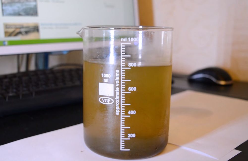 - Фильтруем выпавший бурый осадок через фильтр для воды, уголь или обычную вату.
