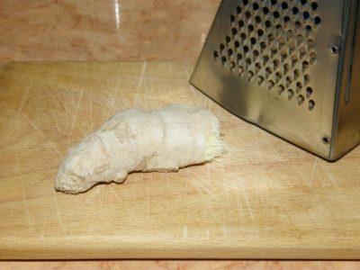 - очистить от кожицы свежий имбирный корень (400 граммов) и измельчить его с помощью ножа или терки;
