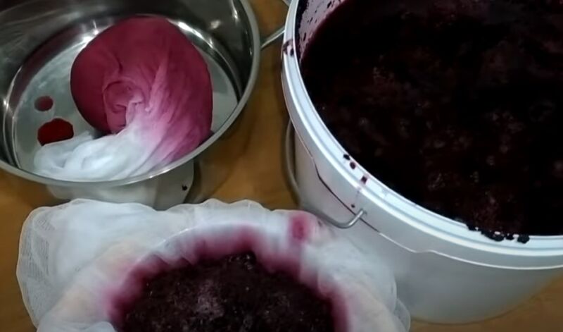Шаг 3. Через неделю рябина должна всходить. Нужно взять мякоть и отжать сок руками, прессом или тканью, но не соковыжималкой. Полученное при экстракции сусло фильтруется через сито и переливается в наш ферментер.