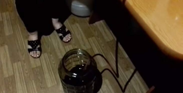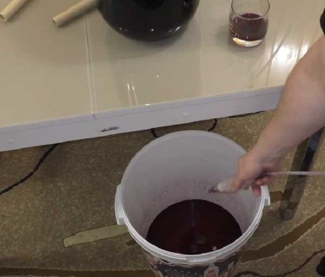 - К этому времени напиток стал светлее и на дне образовался осадок, который необходимо слить в чистую банку с помощью силиконового шланга. Поместите его в вазу на 2 см выше от осадка и перелейте вино в чистую емкость.