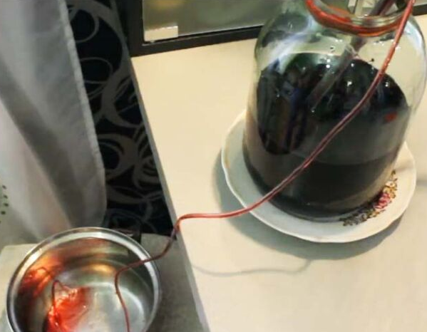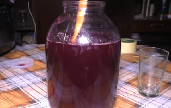 7. Через 11 дней, когда процесс брожения остановится, слейте воду, отделив осадок. Банку с вином ставим под гидрозатвор и отправляем в прохладное место.