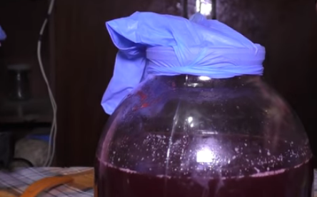- Наденьте перчатку с дырочкой на палец или гидрозатвор и дайте вину настояться 30-40 дней. Пока идет брожение, перчатка надувается. Когда он спадет, процесс брожения можно считать завершенным.
