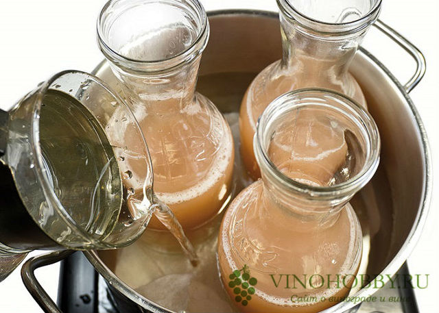 Ее следует осуществлять сразу после того, как оно будет разлито по бутылкам (пока еще нет осадков). Если в бутылках уже имеется отлежка (осадок), то перед тем, как начать нагревание, напиток для начала декантируют в другую чистую посуду.