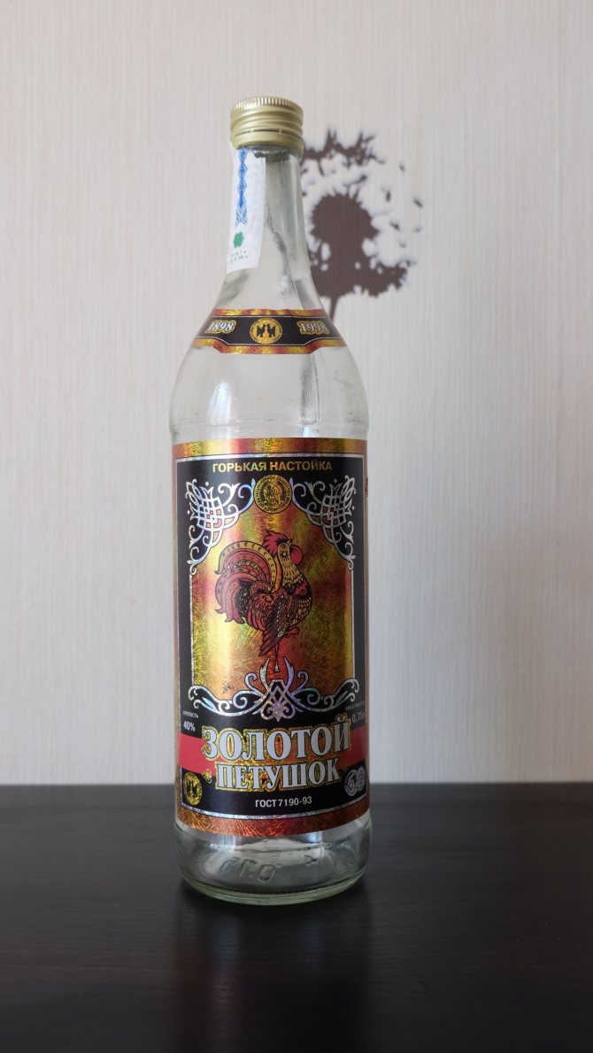 - Настойка горькая Золотой петушок (в состав входит значительное количество спиртных напитков: коньяк, портвейн, алкоголь, чем и оправдывается название «настойка горькая»).