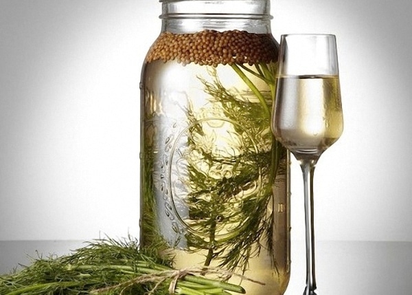 - Добавьте в стеклянную банку 2-3 натертых или целых стебля травы, залейте литром самогона с сахарной водой (по вкусу).